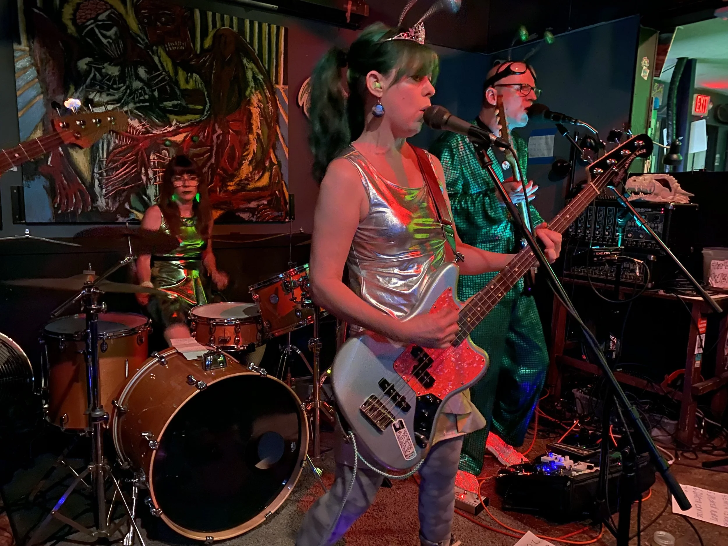 Princess Pepperspray is a space pirate here to conquer with her rock and/or her roll! When she is not DJing at her local dive bar you will find her playing post-punk music with her band, ATTENTION!! EARTH DWELLERS! Or playing with her fuzzies who earthlings refer to as pets.